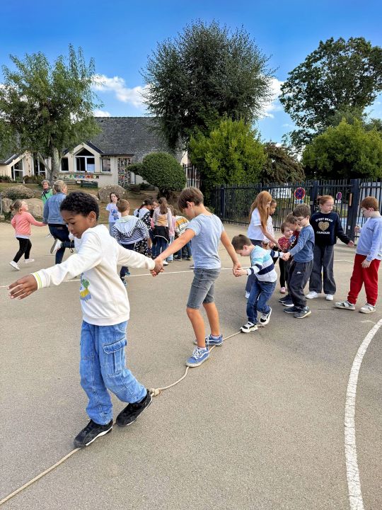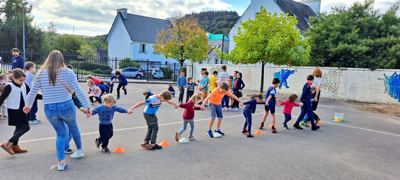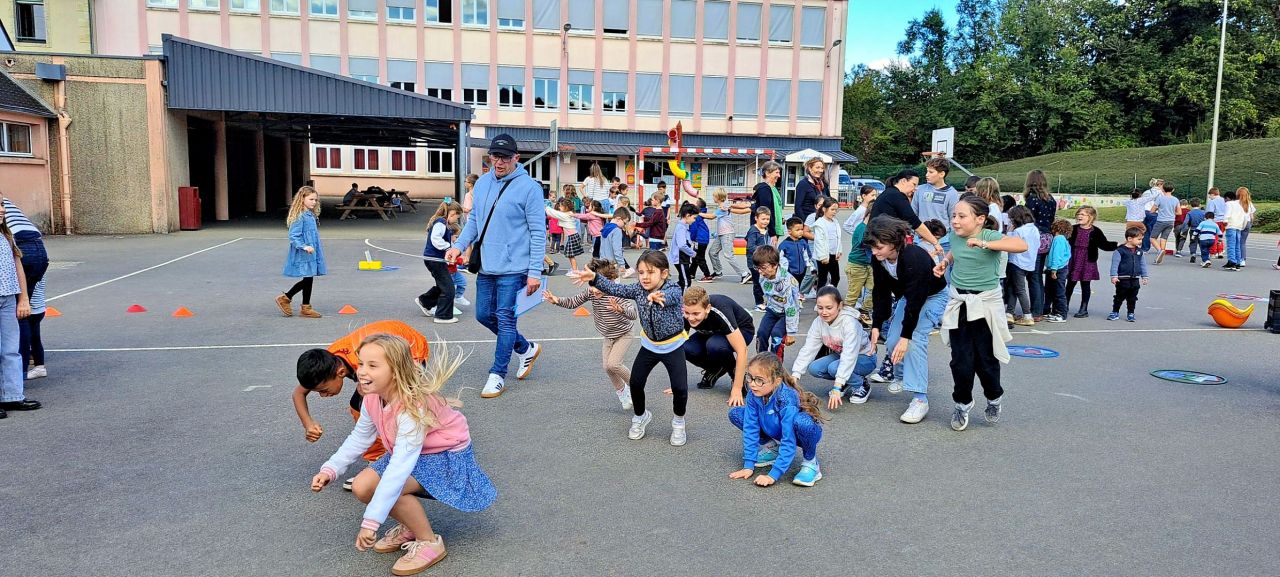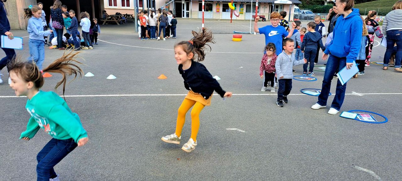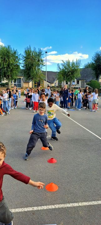 Aujourd'hui, 14 équipes constituées d'enfants de toutes les classes de l'école ont participé au grand jeu de la rentrée proposé par l'Ugsel ( Union générale du sport de l'enseignement libre) intitulé " Bouge avec les régions".