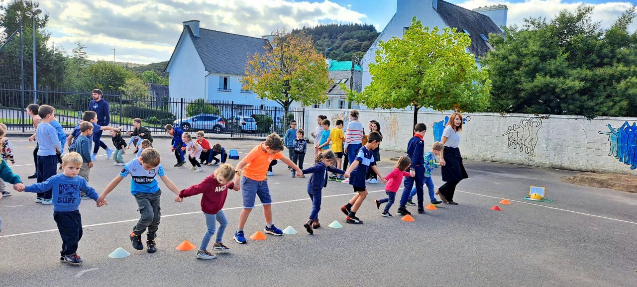 Ce matin, pendant que les primaires couraient nous sommes restés à l'école pour courir avec les maternelles de Dinéault.