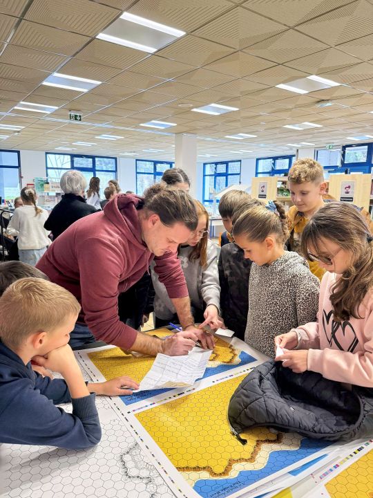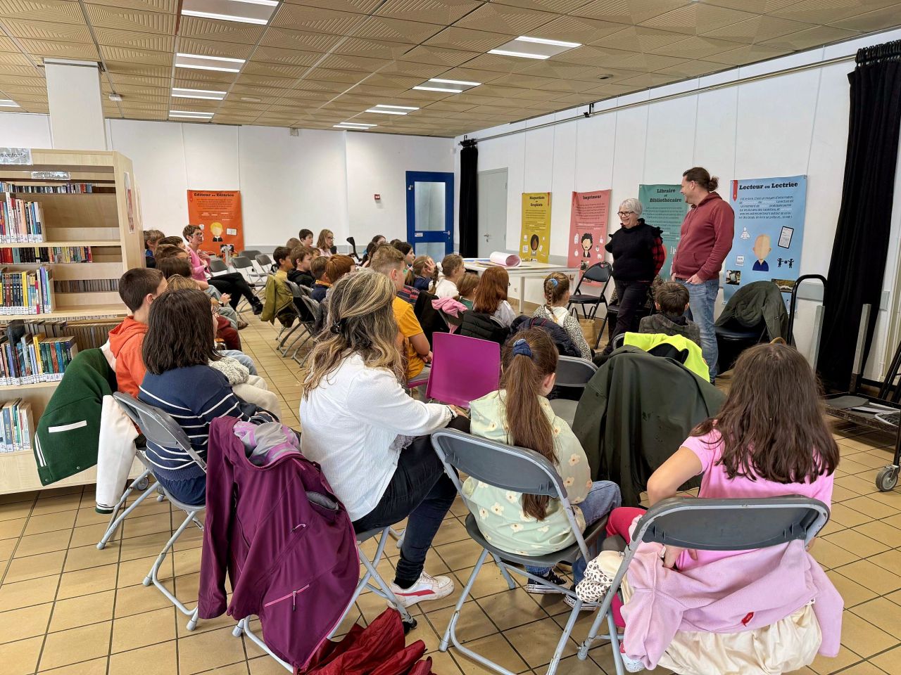 Aujourd’hui , la classe de CM2 s’est rendue au Salon du Livre de la bibliothèque de Châteaulin. Les élèves ont eu la chance de rencontrer Morgan Fromont, auteur et éditeur.