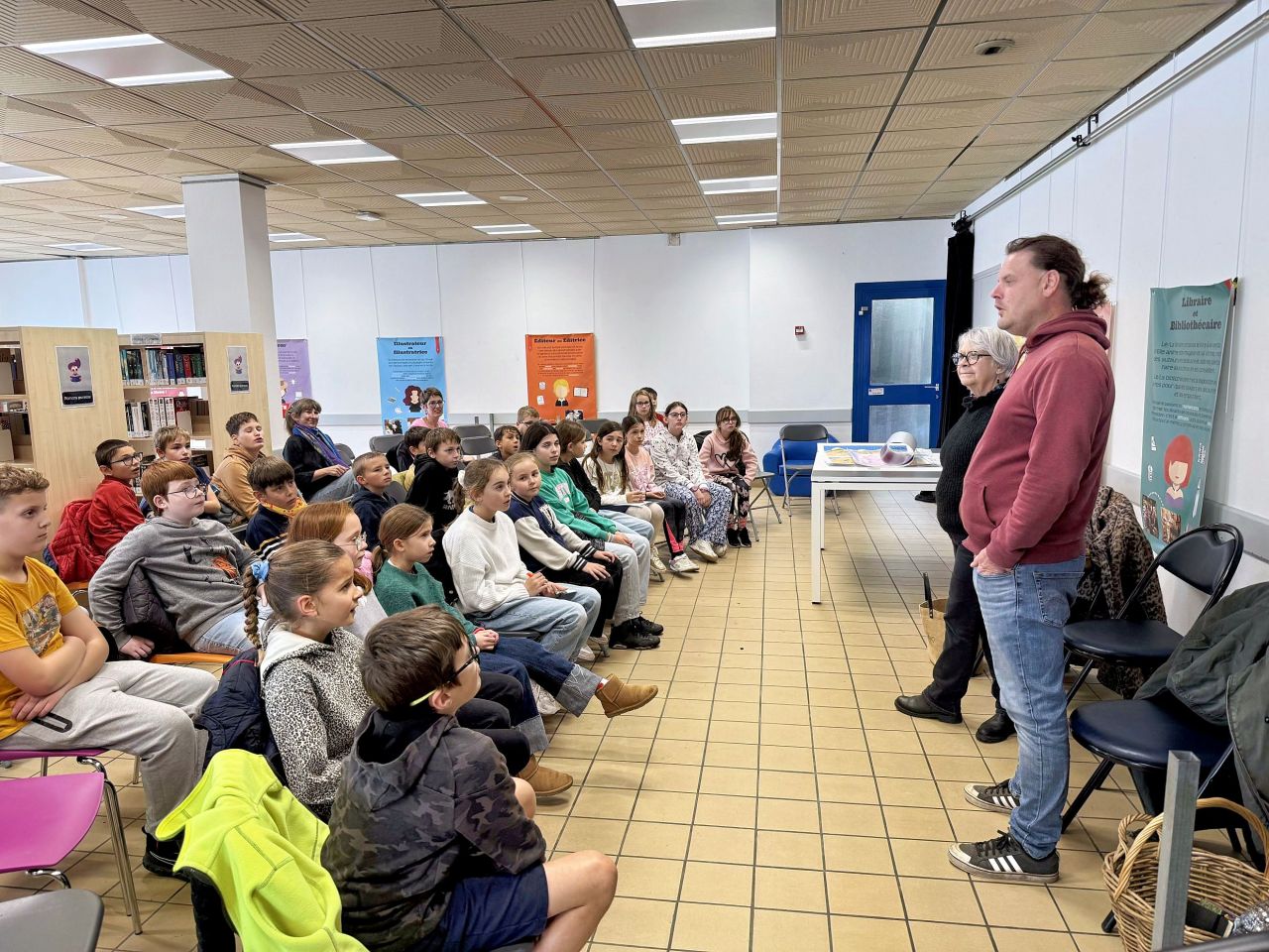 Les élèves ont pu lui poser de nombreuses questions sur ses livres, ses sources d’inspiration, son parcours et les différentes étapes qui permettent à un livre de passer de l’idée à l’objet que l’on peut tenir dans les mains.